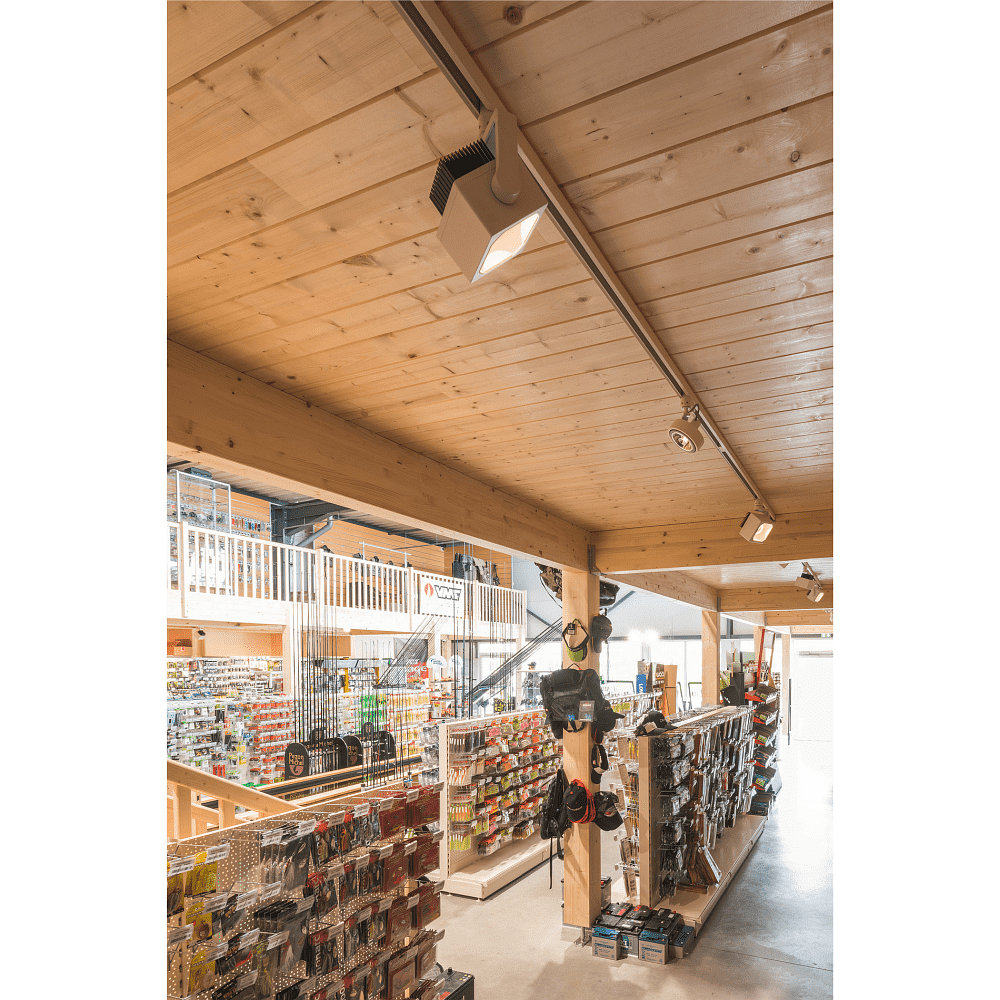 The LED 3-Phase Spotlight EURO CUBE is ENEC certified and has an energy efficiency class of F. It is ideal for use on ceilings or walls in various indoor spaces. Please note that the light source can only be replaced by the manufacturer or an authorized service technician.