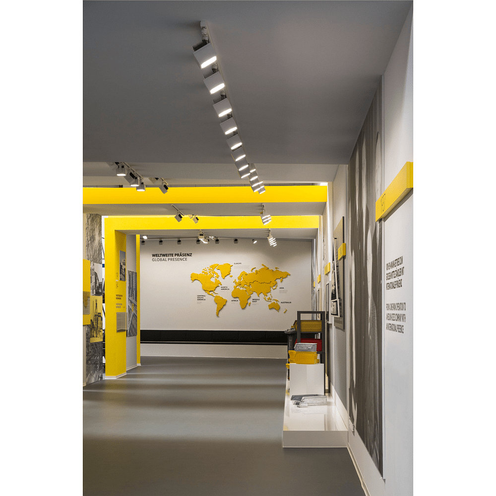 The LED 3-Phase Spotlight EURO CUBE impresses with its cube shape and a color rendering index of over 90Ra. This gimbal spotlight comes with an adapter and is dimmable. With a swivel range of 350°, it offers flexible applications in various spaces.