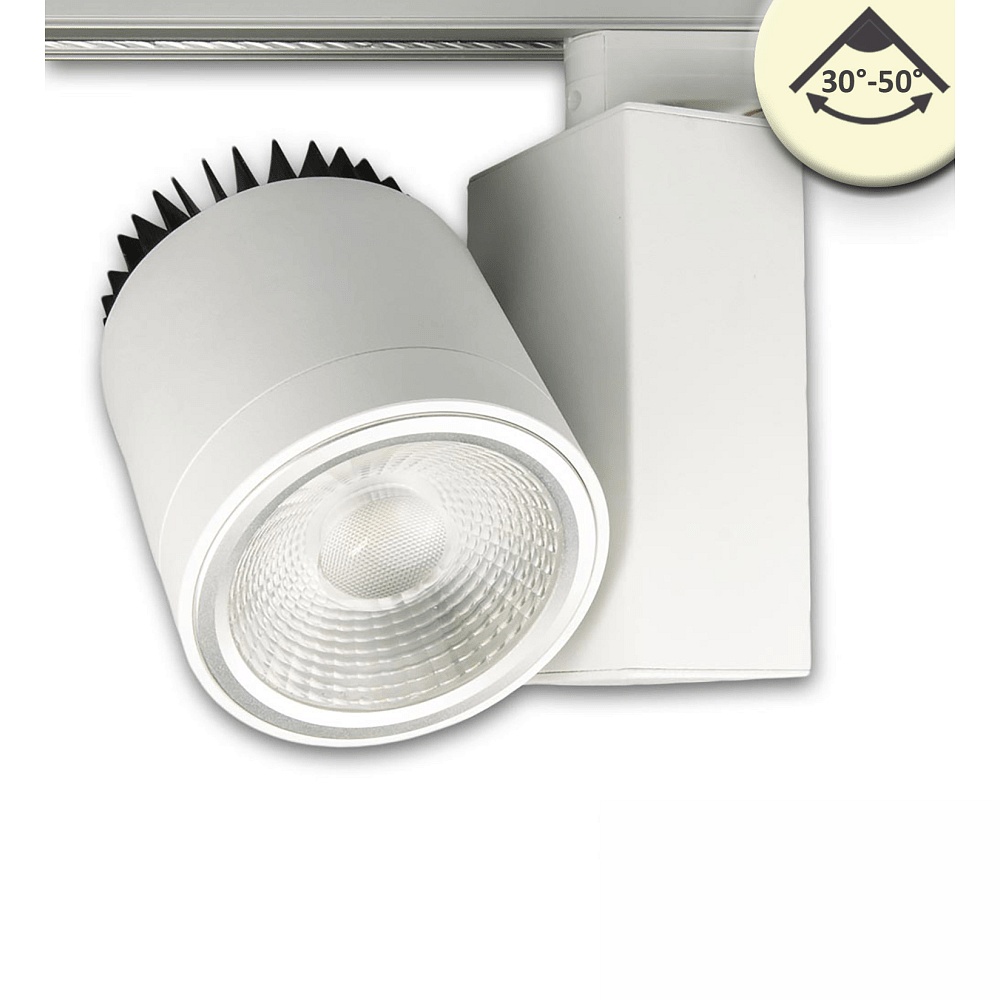 LED 3-phase track spot, 30°-50° focusable, 30W, rotatable and swivelling, dimmable, 4000K 3000lm, matt black