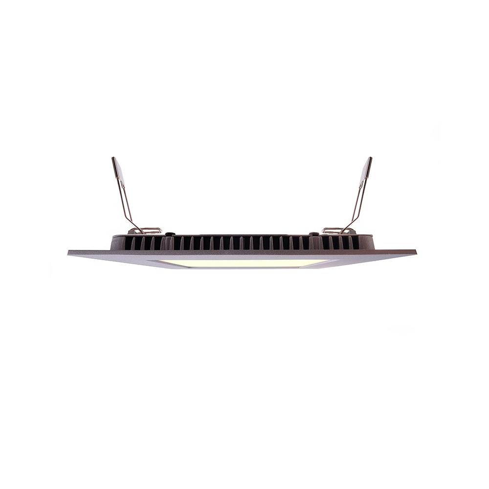 The LED recessed ceiling light is made of aluminum die-cast and is silver in color. It has an IP protection rating of IP20, protecting it from dust and contact. With a protection class of 3 and a temperature range of -5°C to +40°C, it is versatile in its use.