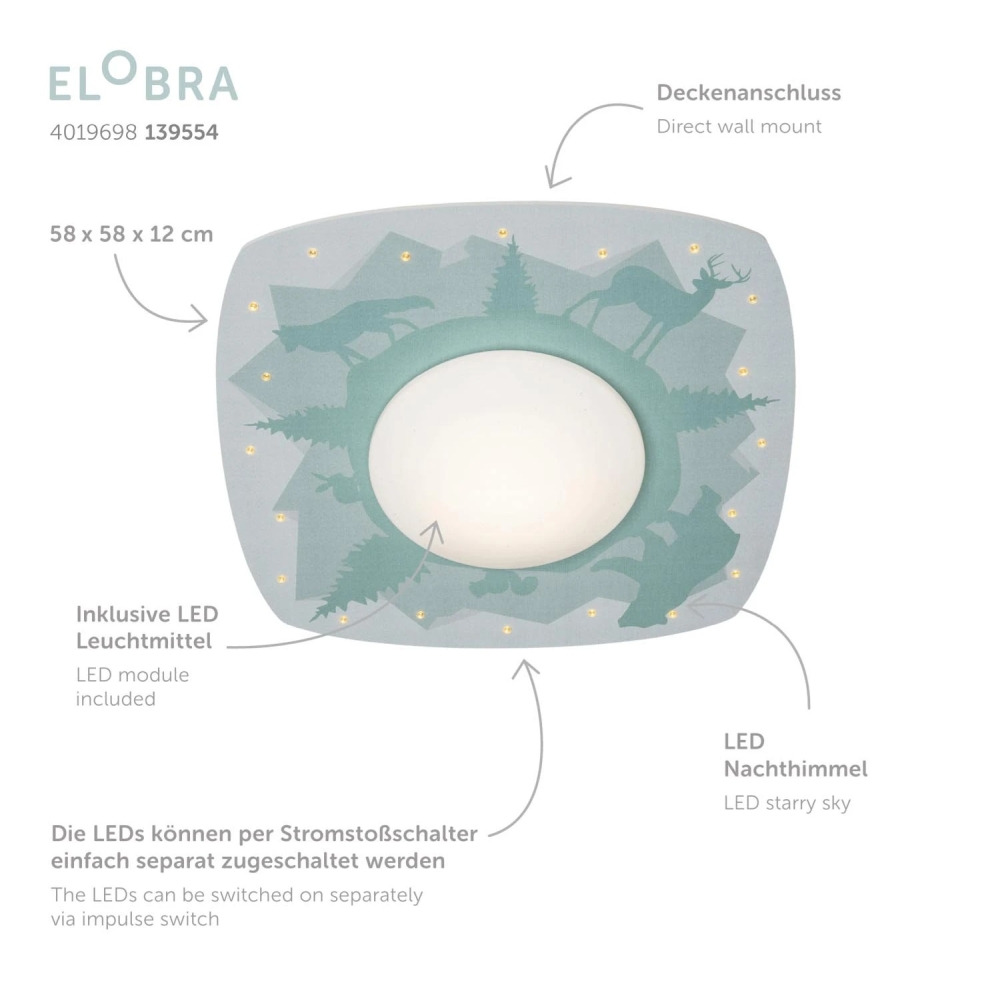 LED Ceiling luminaire SCANDI „WALD“ LED board + 20 LED, 11W, 3000K, mint green