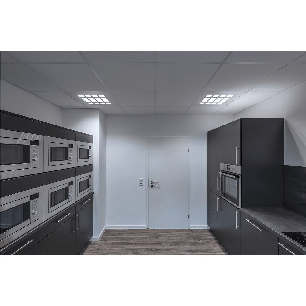 The LED Recessed Ceiling Light LED PAVONO 600x600 is a high-quality lighting solution for indoor spaces. With a beam angle of 100°, it provides uniform illumination of the room. With a color rendering index of 90Ra, colors are accurately represented, creating a pleasant atmosphere.