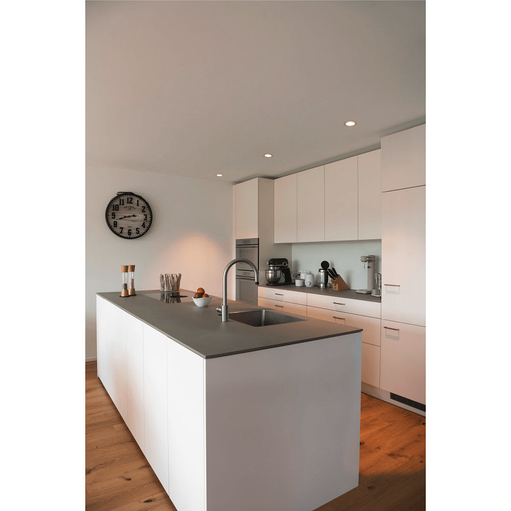 The color rendering index of 90Ra guarantees a true-to-life representation of colors, which is particularly important in rooms with high demands on light quality. With a color temperature of 2700K, the LED recessed ceiling light creates a warm and pleasant light that creates a cozy atmosphere.