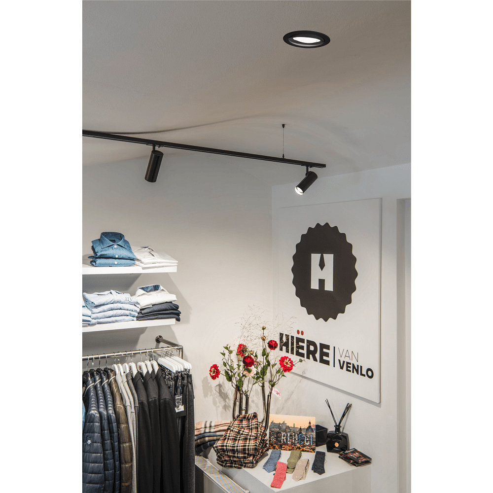 The ceiling recessed light has a size of Ø 12 x H 7.3 cm and weighs 0.55 kg. Its modern design in black and transparent seamlessly blends into any room decor. The housing is made of aluminum and glass, ensuring a robust and durable construction.