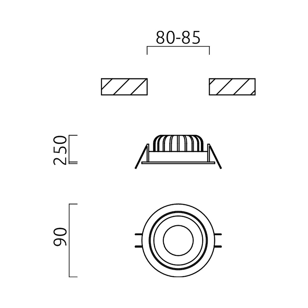 The recessed ceiling spotlight comes with accessories such as clip springs and driver, making installation easy and straightforward. Installation is done using screw clamps, and the adjustable shape allows for individual alignment of the light beam.