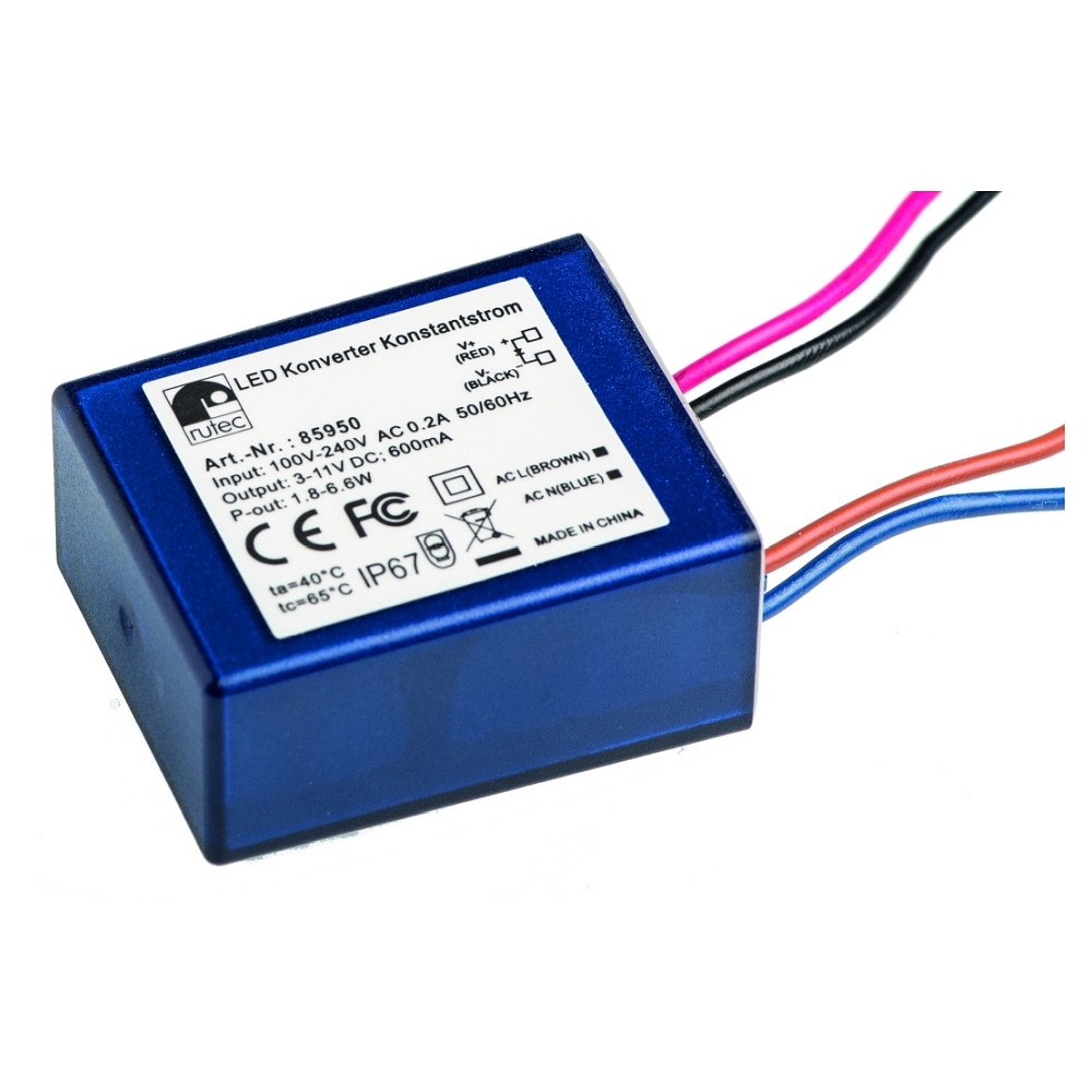 LED converter, 600mA, 1,8W-6,6W, 100V-240V, static, IP64