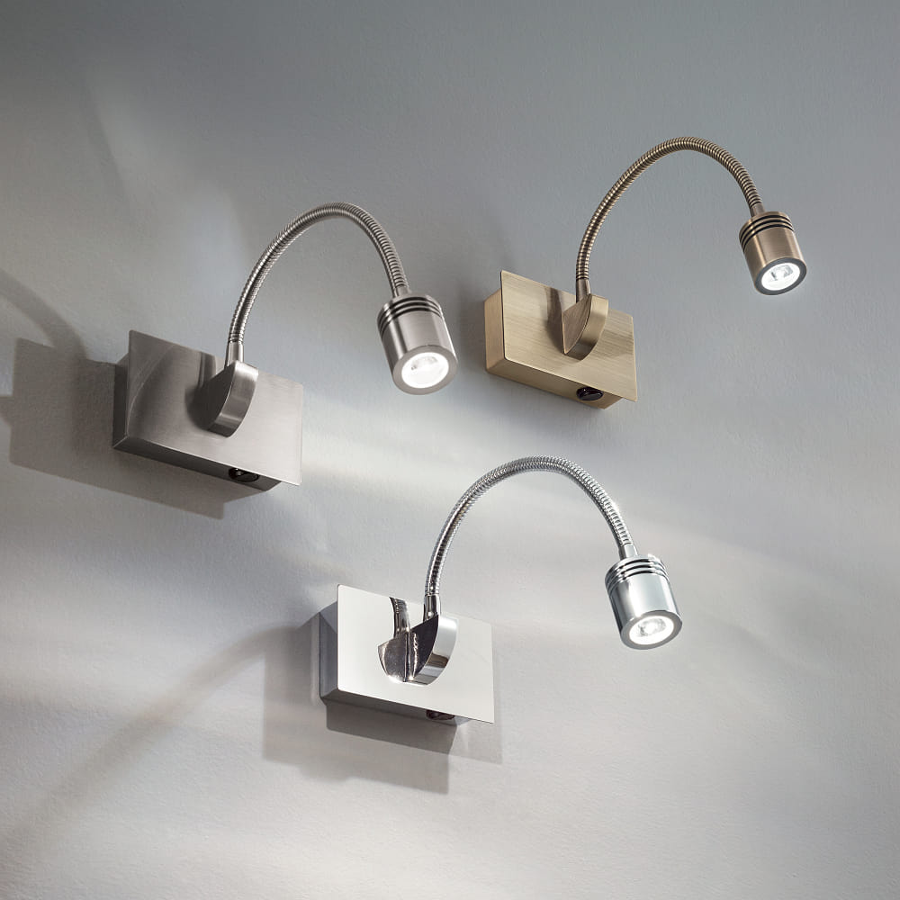 The LED display light / wall light DYNAMO AP1 is a versatile lighting element for indoor use. Equipped with a flexible arm and a practical switch, it offers maximum flexibility in directing the light. The antique brass design gives the light an elegant and timeless look.