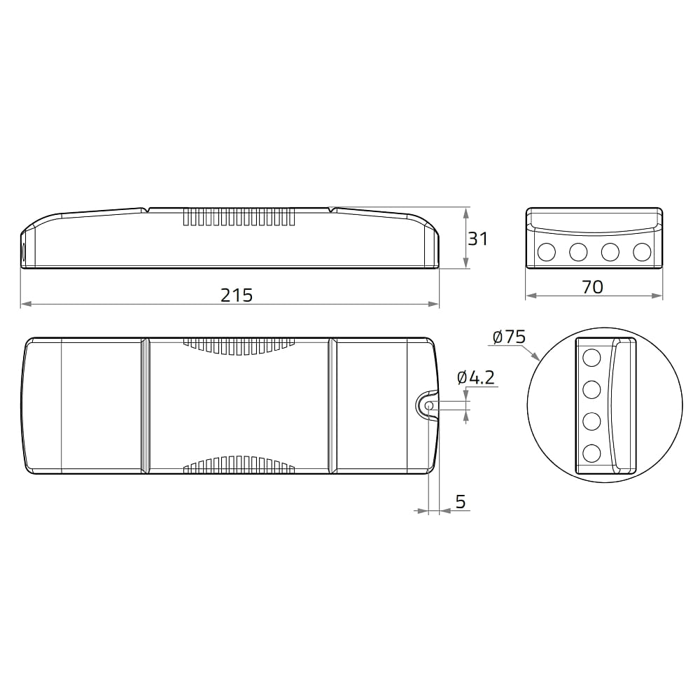 With dimensions of 21.5 x 7 x 3.1 cm, the ballast is compact and easy to install. It is equipped with spring-loaded terminals and strain relief to enable easy wiring.