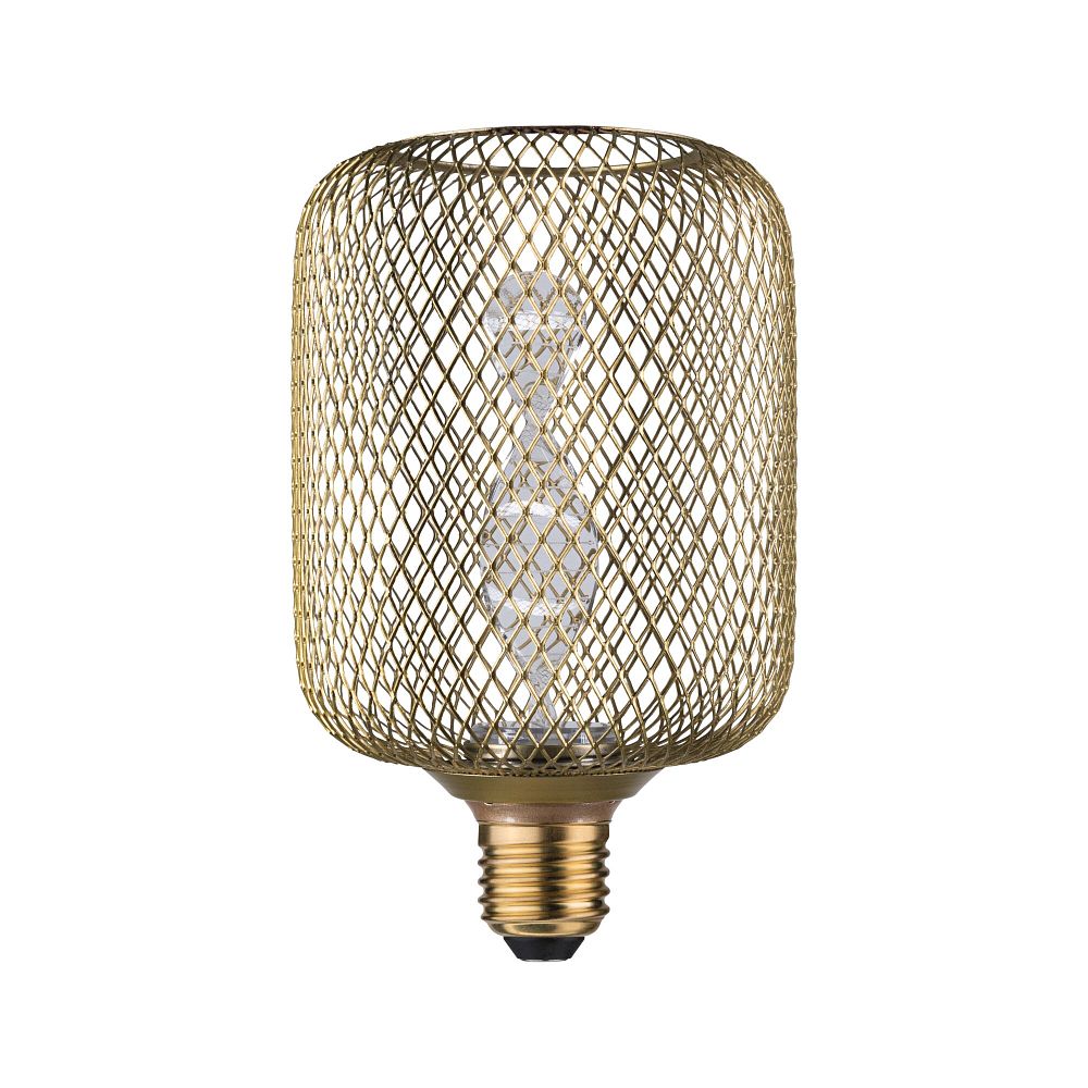 The LED decorative filament lamp METALLIC GLOW CYLINDER HELIX impresses with its exclusive design and high-quality materials. The open metal cage in brass finish gives the lamp a modern yet timeless aesthetic. The laser-engraved helix filament adds stylish accents and creates a unique play of light. With a diameter of 10 cm and a length of 16.2 cm, this lamp is a real eye-catcher that harmoniously integrates into various room concepts.