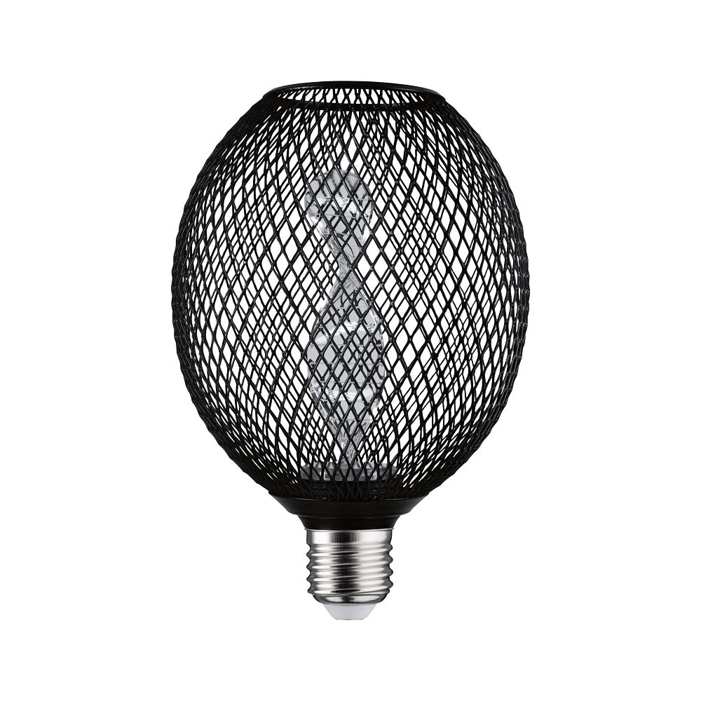 The LED decorative filament lamp METALLIC GLOW GLOBE HELIX by Paulmann makes a stylish statement with its open metal cage in black finish. The curved globe shape gives the lamp an exceptional look, which is further highlighted by the laser-engraved helix filament. The combination of acrylic and metal ensures a high-quality and durable workmanship that visually enhances any ambiance.