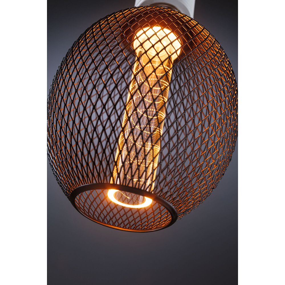 The LED decorative filament lamp METALLIC GLOW GLOBE SPIRAL impresses with its extraordinary design. The open metal grid frame in a domed globe shape gives the lamp a modern yet elegant look. The black housing made of high-quality metal and acrylic ensures robust workmanship and makes the light source a real eye-catcher. With a diameter of 11 cm and a length of 16 cm, the lamp is a decorative element that can be perfectly integrated into various lighting concepts.