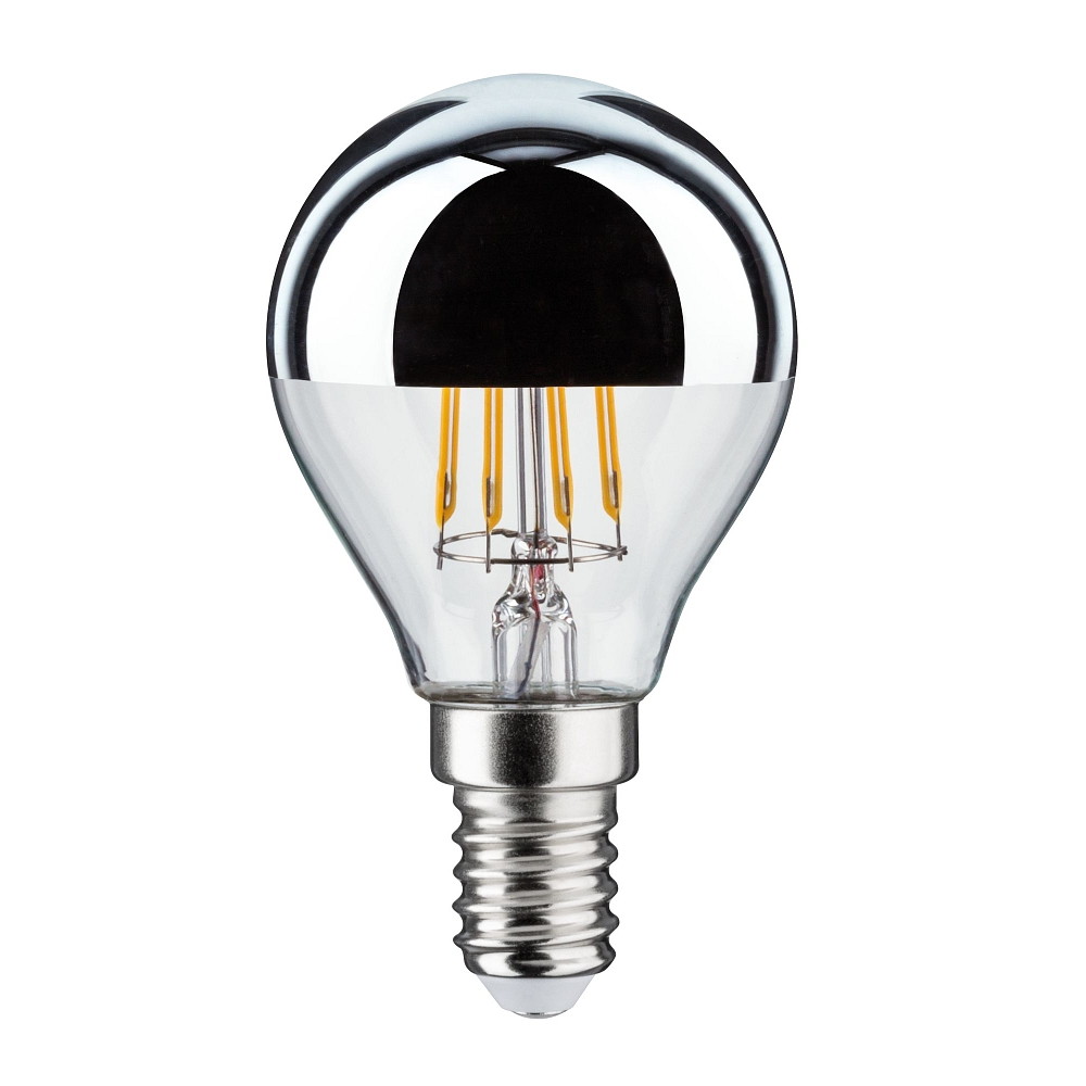 LED Filament Top mirrored Lamp Drop SILVER, 230V, E14, 4.8W 2700K 440lm, dimmable, clear
