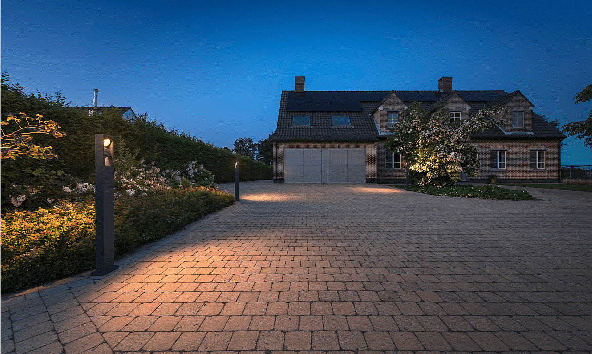 The ESKINA FRAME floor lamps are available in various heights with 1 or 2 adjustable spotlights. Additionally, other items from the Outdoor series ESKINA FRAME for wall and ceiling mounting are available. With a luminous flux of 2200lm at 3000K and 2400lm at 4000K, the floor lamp offers bright and pleasant lighting in outdoor areas.