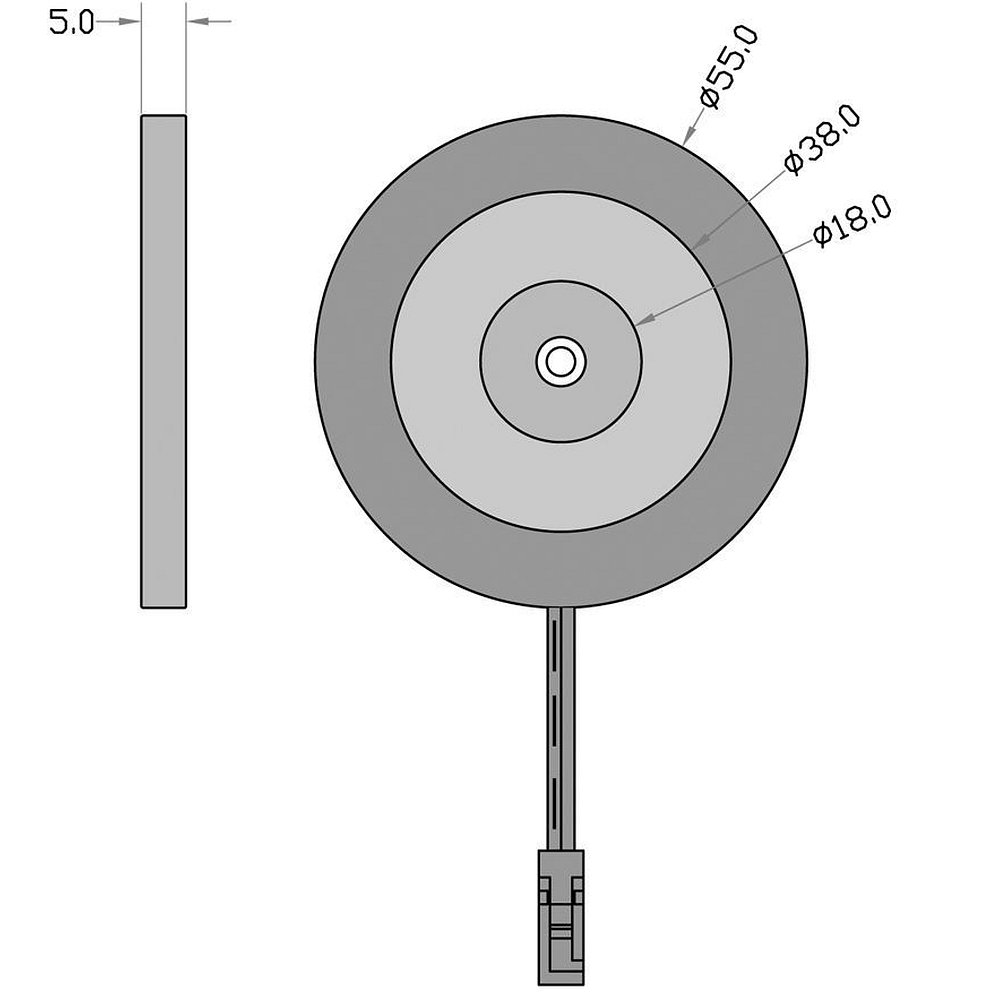 The furniture mounting light has a diameter of 5.5cm and a height of 0.5cm. It is made of aluminum and plastic in the color Silver Grey RAL 7001. Due to the high-quality materials and compact design, the light fits harmoniously into any furniture design.