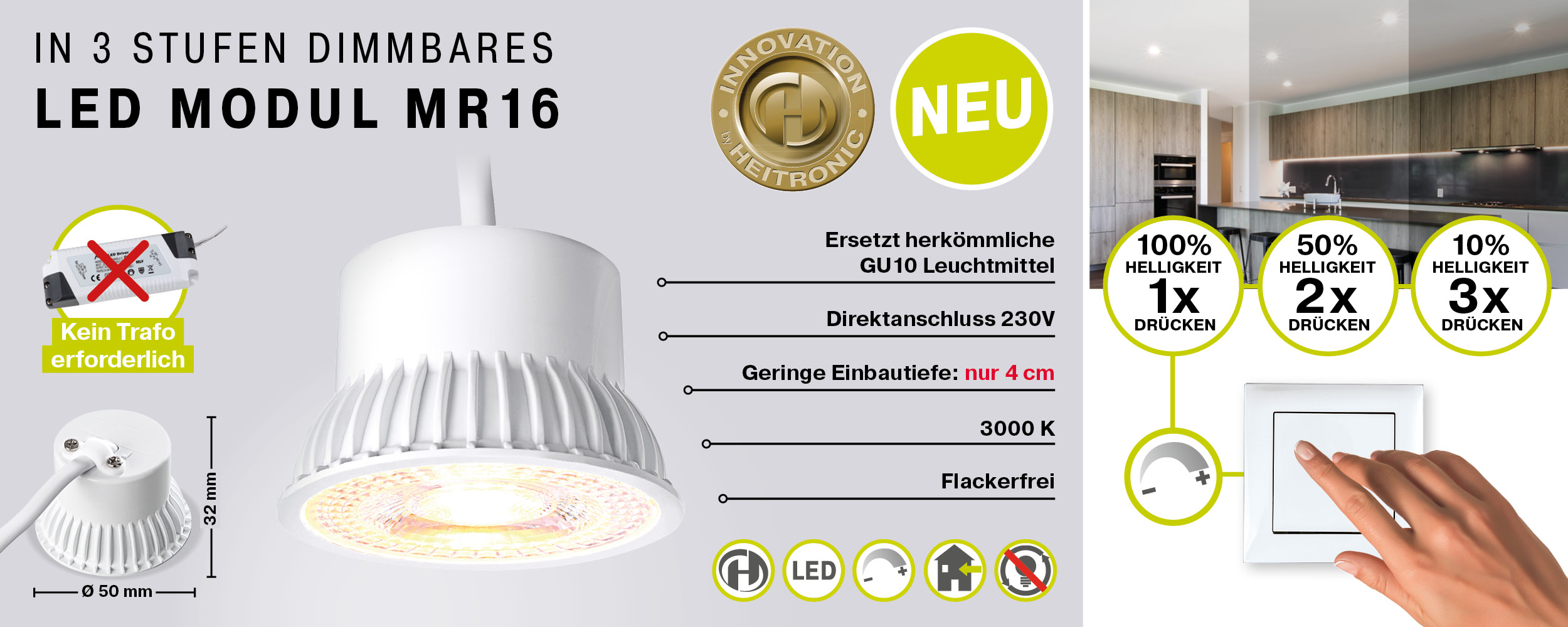The LED module comes from the renowned house of Heitronic and impresses with its high-quality workmanship and durability. The combination of aluminum and plastic ensures stability and longevity. You can rely on a reliable lighting solution.