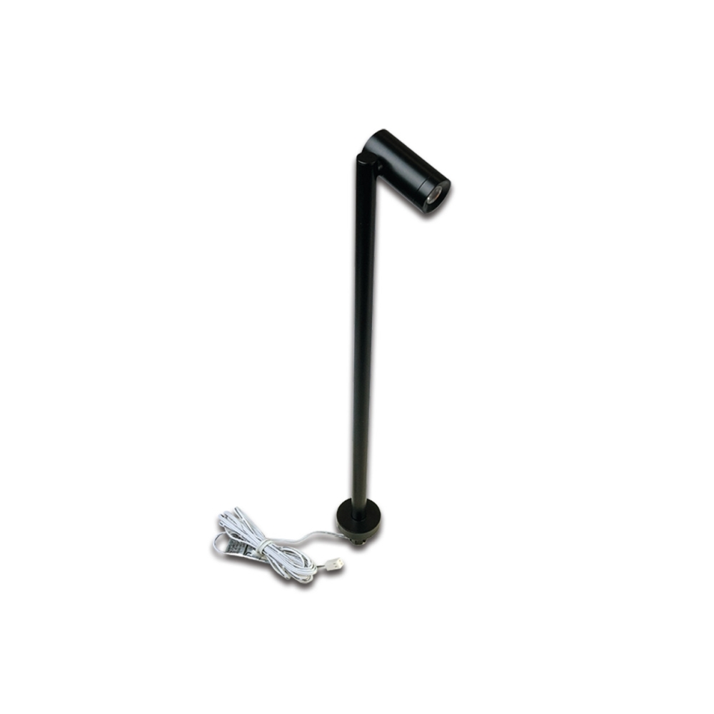 LED Mono Spot for object lighting, seamless height up to 30cm, 24V DC, CRi>90, rotatable, swiveling, 1.5W 3000K 38°, black