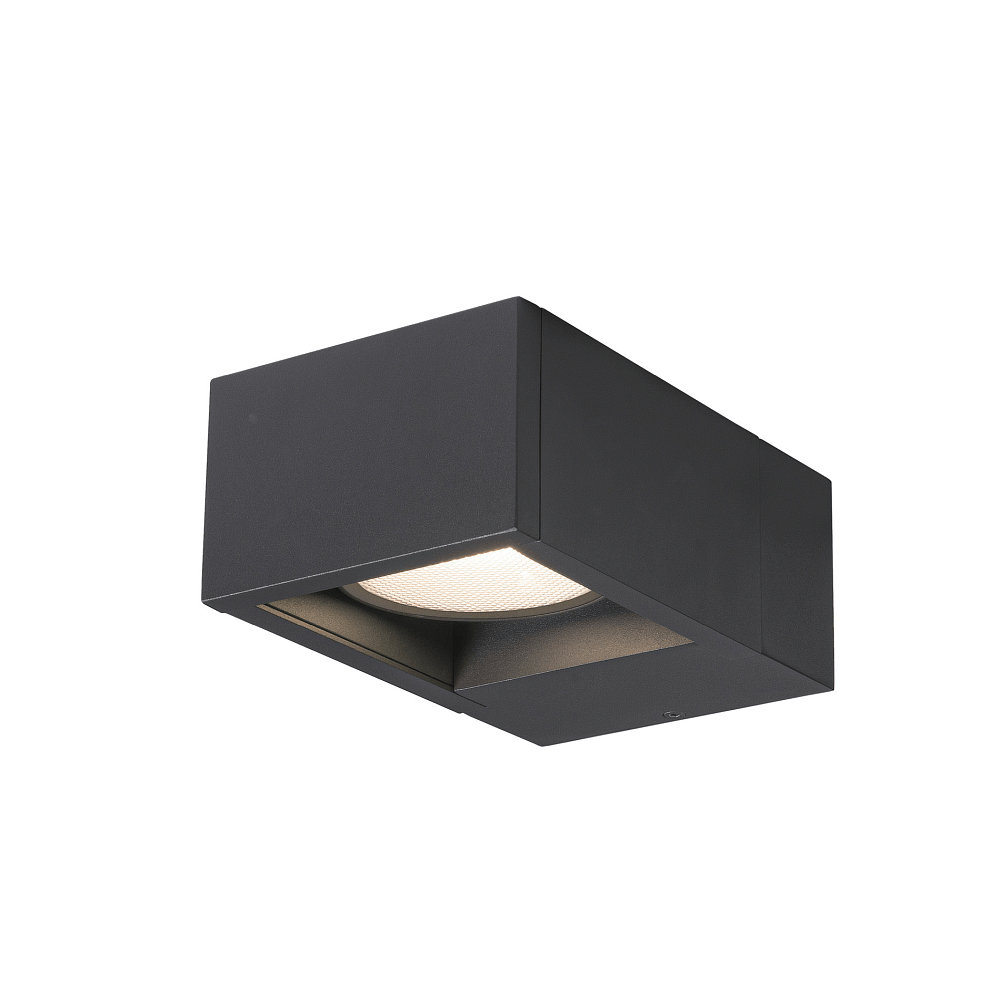 The LED outdoor wall light ESKINA FRAME WL SINGLE CCT is a modern wall light for outdoor use, equipped with a widely tiltable, round light head in a square housing. The light has a beam angle of 95° and is available in anthracite color.