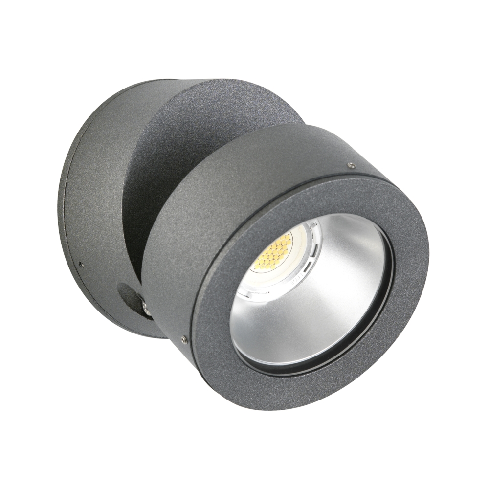 LED Outdoor Wall spot Type No. 2389, IP54, 12W 3000K 1200lm 30°, rotatable and pivotable, dimmable, cast alu, anthracite