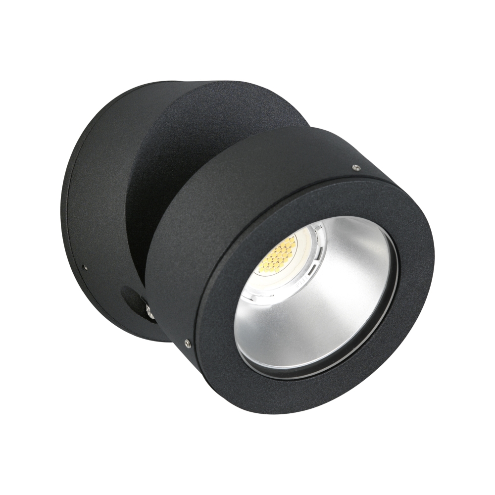 LED Outdoor Wall Spot Type No. 2389, IP54, 12W 3000K 1200lm 30°, rotatable and pivotable, dimmable, cast alu, black matt
