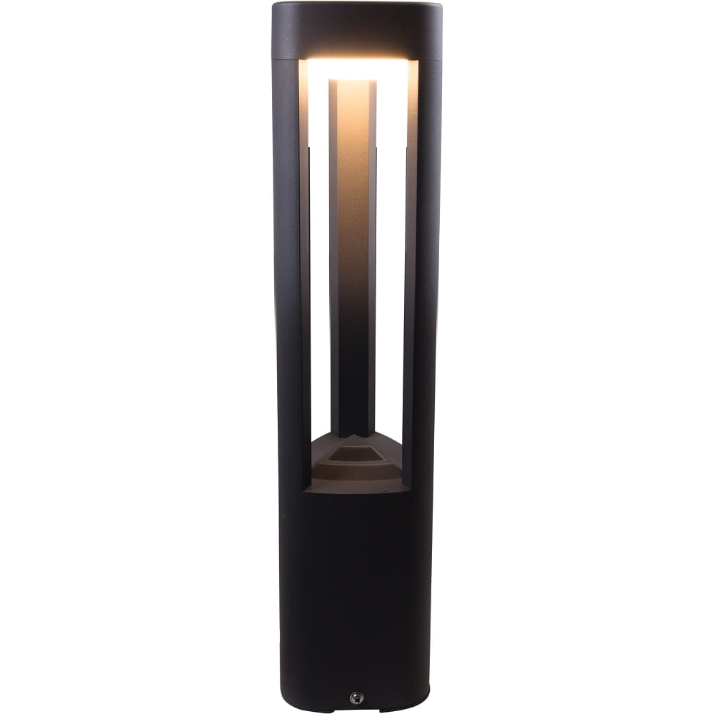 The bollard light has dimensions of 12.8 x 50 x 12.8 cm and weighs 1.717 kg. With a power consumption of 9W and a light output of 250lm, it provides a switchable, warm white light. The LED module behind the satin diffuser ensures even and glare-free illumination in the entrance area or on the terrace. The color temperature is 3000K with a color rendering index of 80Ra.