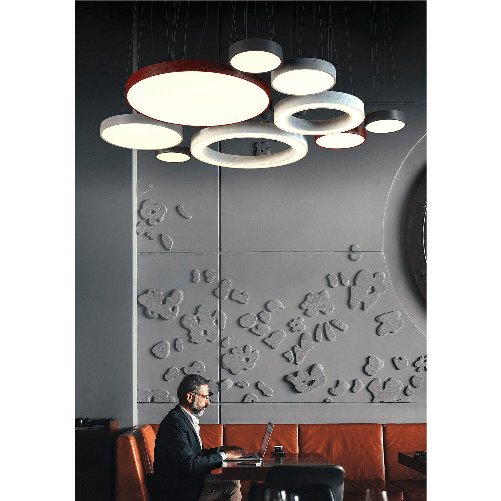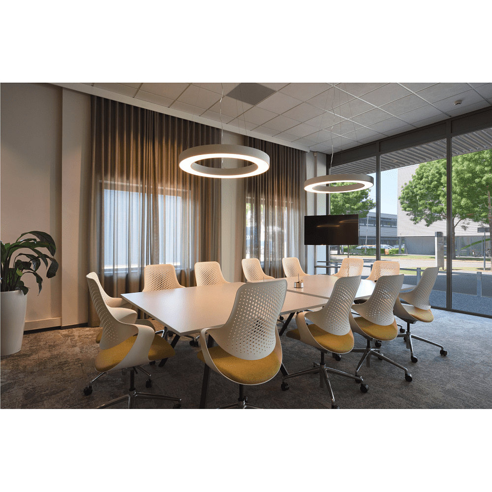 The LED pendant light MEDO RING 90 is dimmable and can be regulated using an Analog 1-10V dimmer. The driver is included in the delivery, so the light is ready for use immediately. The beam angle is 105°, providing uniform light distribution.