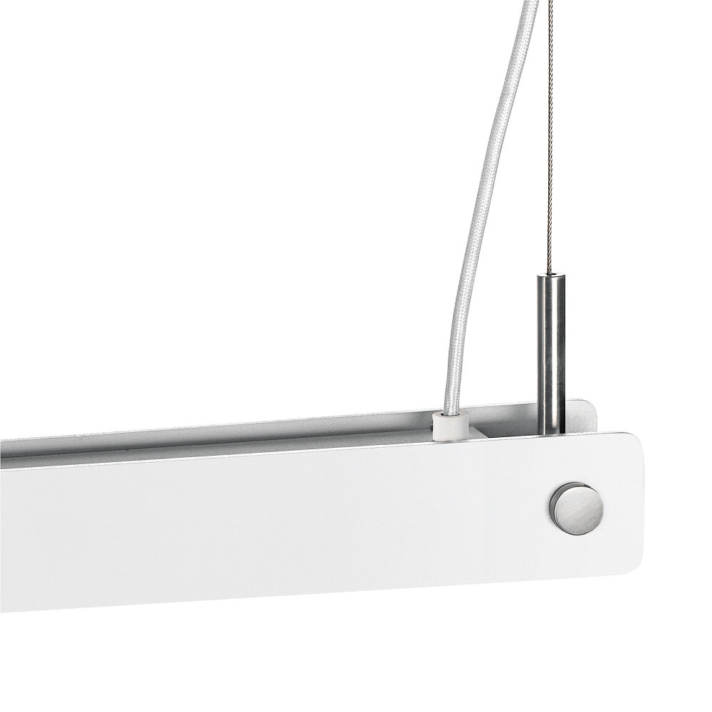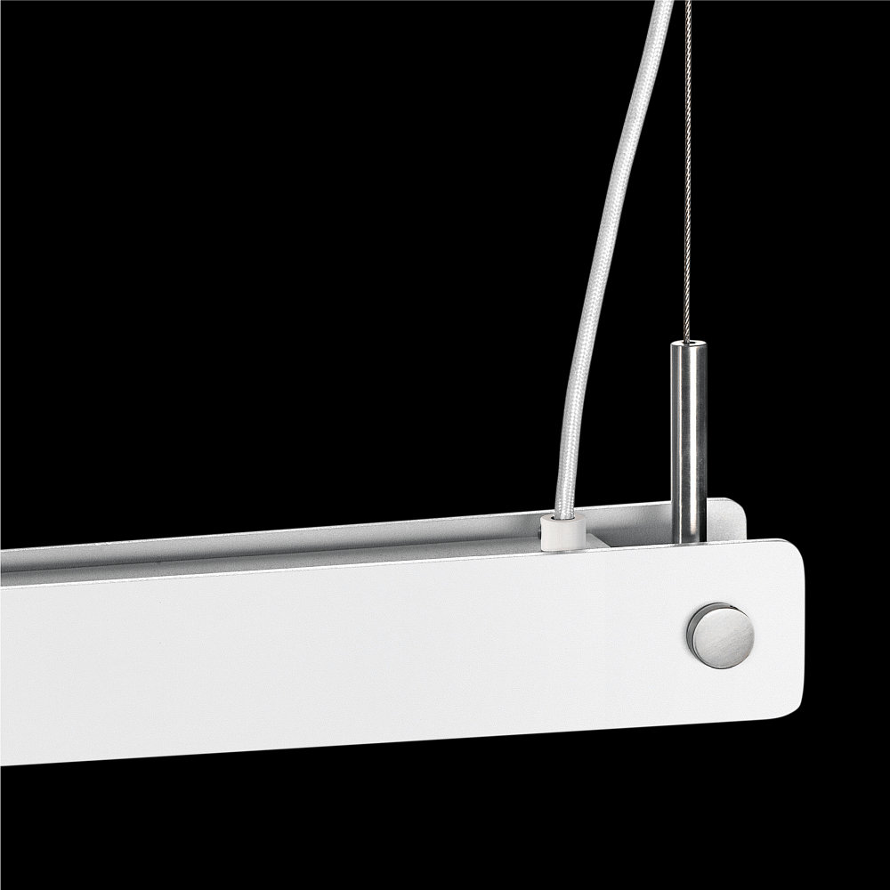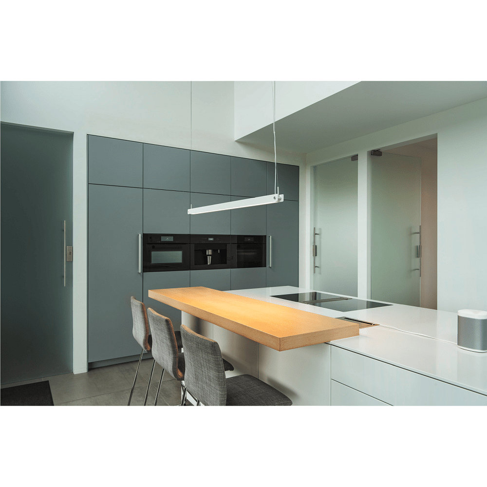 The pendant light comes with all the necessary accessories and is easy to install. With a size of 120 x 4.2 x 4 cm and a weight of 2.67 kg, it fits perfectly on any ceiling. The pendant light also features a square rosette and a system power of 32W for optimal lighting.