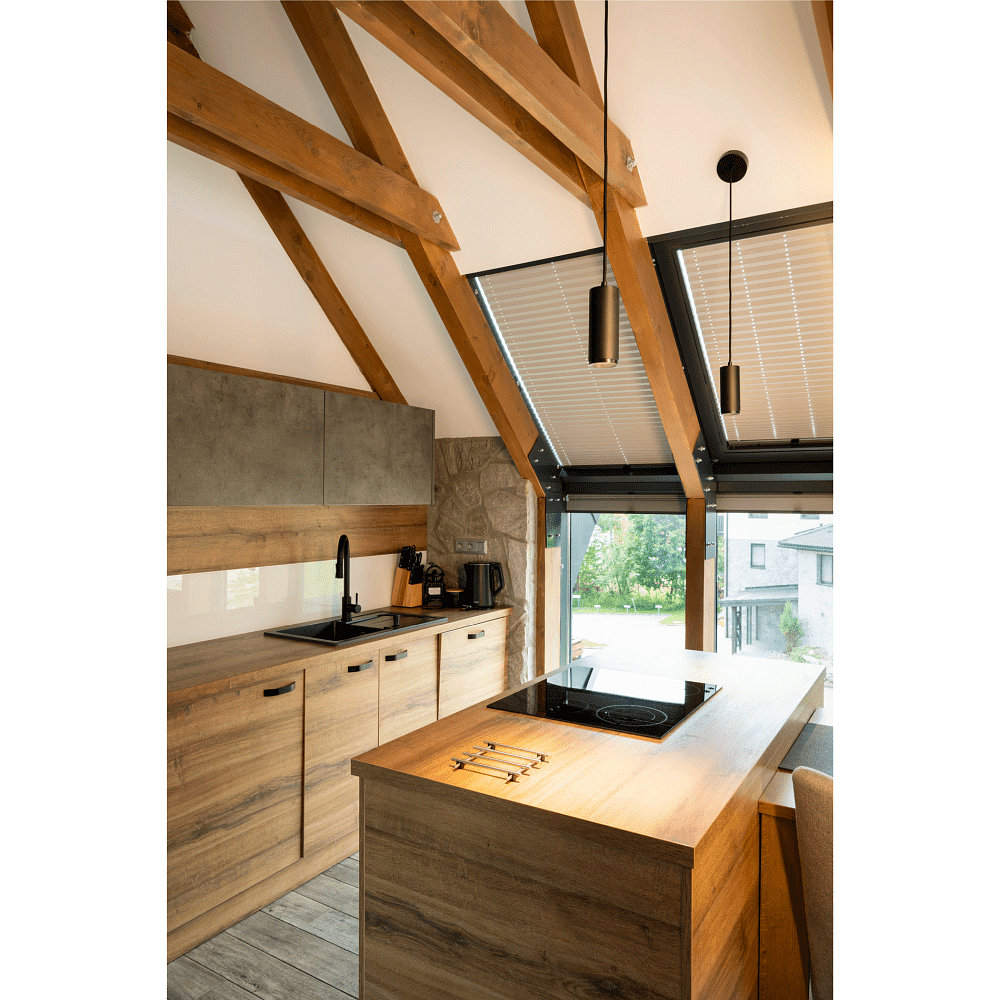 The pendant light includes the light bulb, which generates a luminous flux of 985lm. The material is made of high-quality aluminum and plastic, providing a modern look and robust construction.