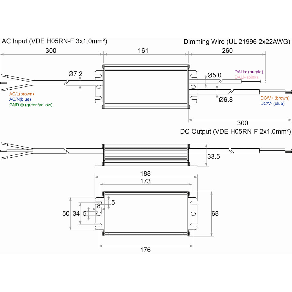 LED power supply DALI-2 BLD-120-V048-ANS-RB0000 220-277VAC/186-250VDC DALI controllable, with open cable