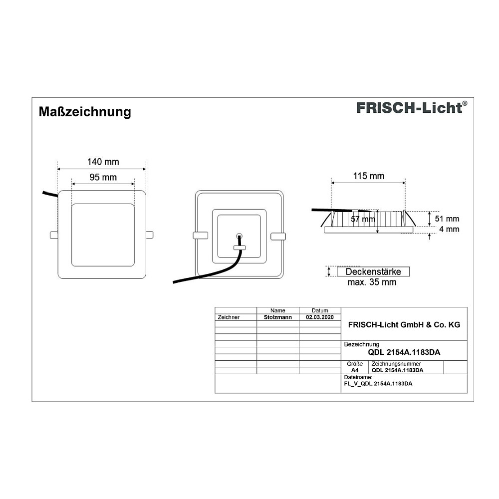 Frisch-Licht LED Recessed Downlight, 12W, 3000K, 1100lm, square, IP54, DALI dimmable, white LED Recessed Downlight, 12W, 3000K, 1100lm, square, IP54, DALI dimmable, white