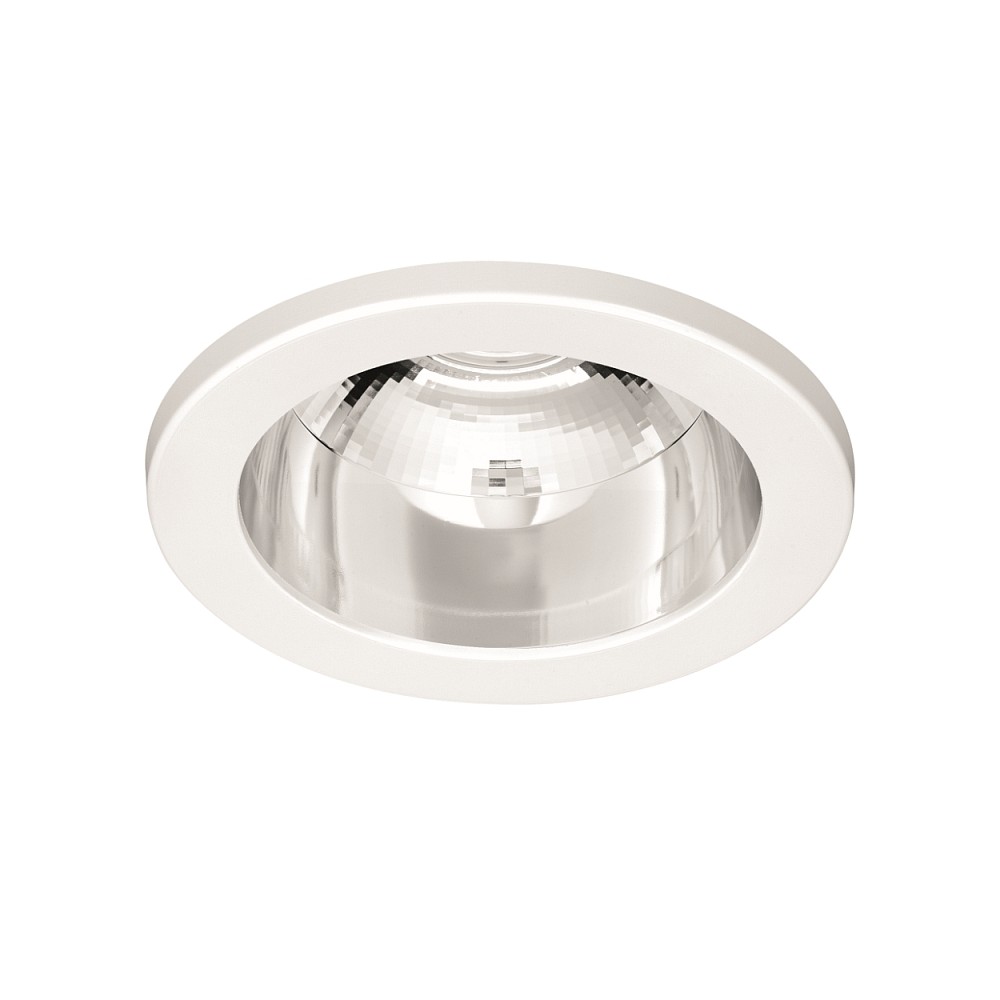 The downlight has a round shape and features a high-gloss reflector that directs the light precisely downwards. The combination of anodized aluminum, steel sheet, and PMMA (polymethyl methacrylate) ensures a durable and stable construction. The matte acrylic cover inside protects the recessed LED module and provides glare-free light distribution with a UGR value below 19, ideal for workstations with screens. The simple white color blends unobtrusively into various room concepts.