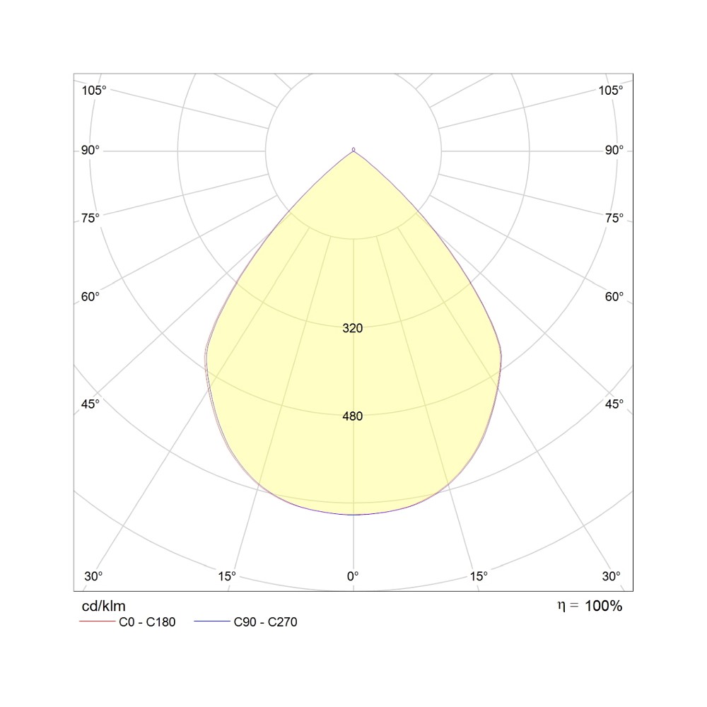 With a color temperature of 4000 Kelvin, the LED downlight delivers a neutral white light that creates a natural and pleasant lighting atmosphere. The light is emitted directly and symmetrically with a beam angle of 90°, enabling uniform room illumination. A luminous efficacy of 100 lumens per watt and a luminous flux of 2000 lumens guarantee bright and energy-efficient lighting with a consumption of only 20 watts.