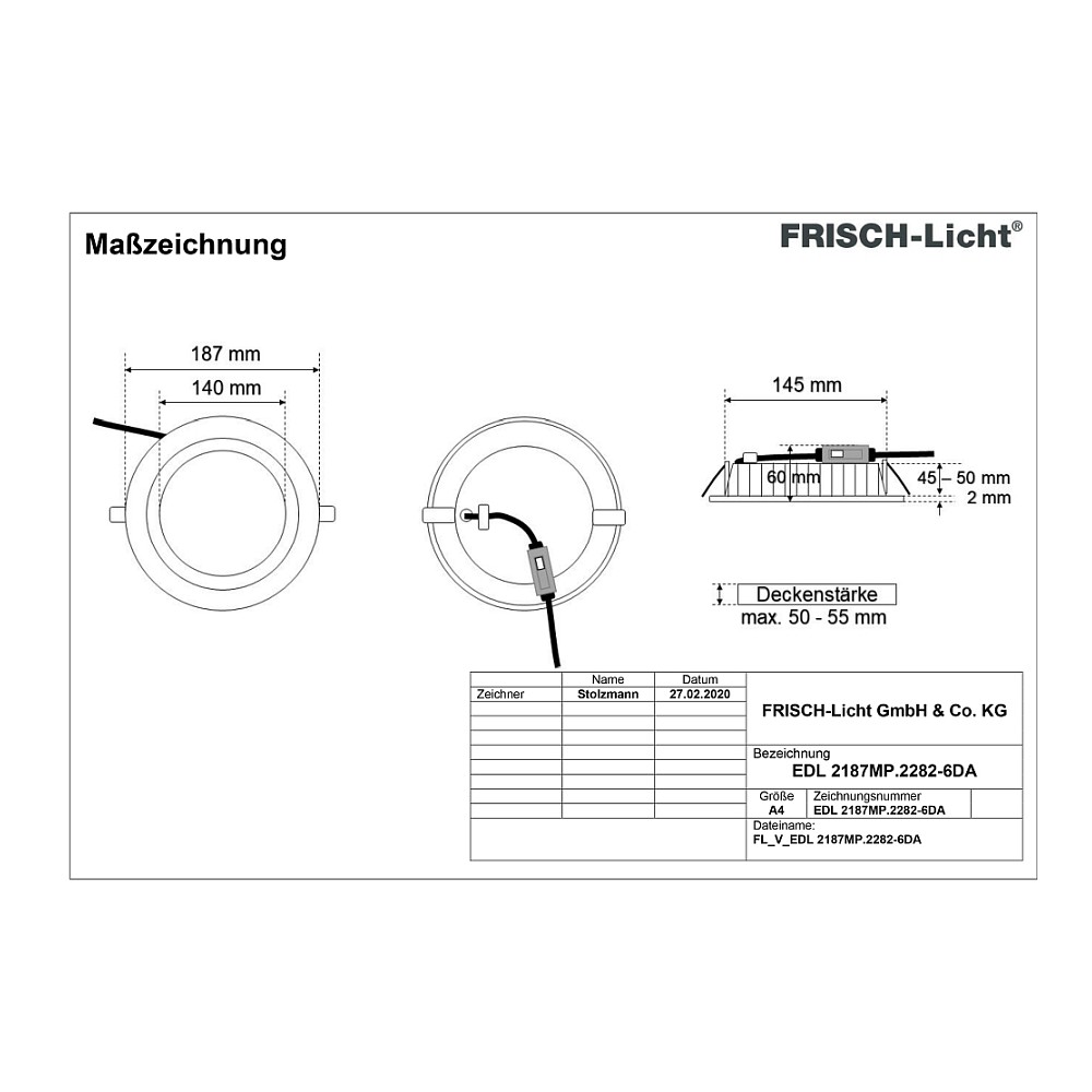 Frisch-Licht LED Recessed Downlight round, 20W, 2700K, 2200lm, IP44, UGR < 19, DALI dimmable, white LED Recessed Downlight round, 20W, 2700K, 2200lm, IP44, UGR < 19, DALI dimmable, white