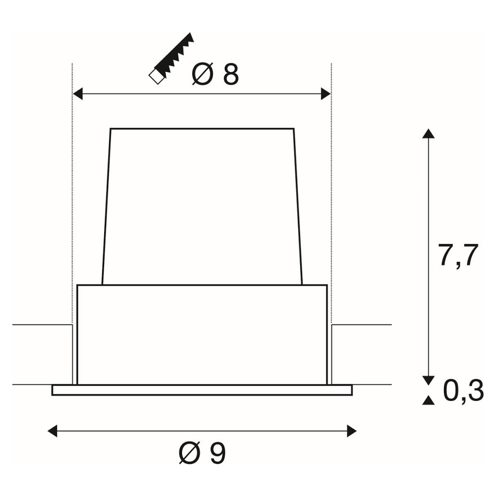 The LED Recessed Light H-LIGHT 1 ROUND is ideal for use in indoor ceilings. With a installation depth of 6cm and a cutout diameter of 8cm, it can be easily and securely installed. The light weighs only 0.33kg and has dimensions of Ø 9cm x H 8cm, making it a discreet yet effective lighting solution.