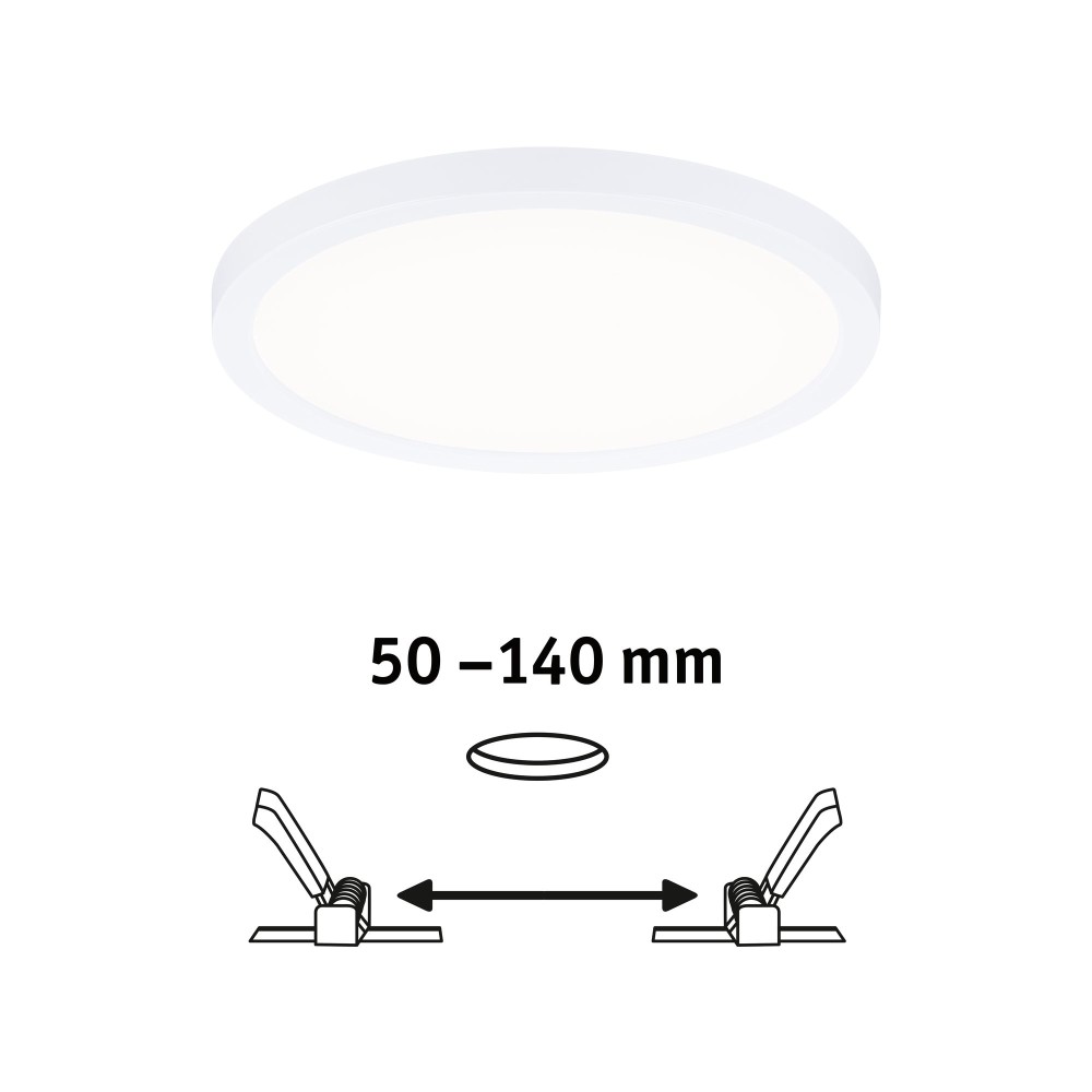 This round LED panel is suitable for installation in ceilings and walls in various areas such as bathrooms, kitchens, hallways, or living rooms. Thanks to the flexible installation with continuously adjustable clamping springs (VariFit), it fits into cavity ceiling cutouts from Ø 5cm to 14cm.
