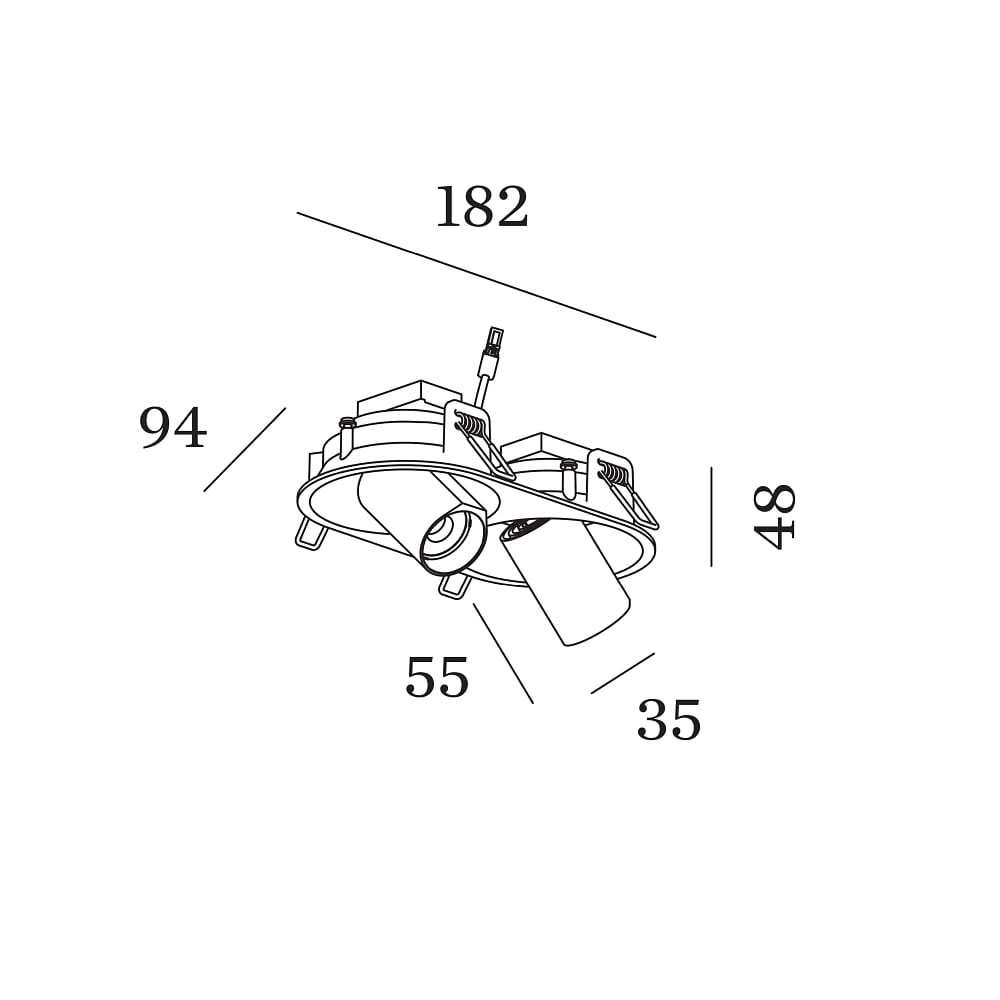 The LED Semi-Recessed Spotlight BLIEK ROUND PETIT 2.0 is a high-quality ceiling spotlight for indoor use. It features two cylinder heads with integrated LED spots, located in an oval recessed frame with a protruding trim.
