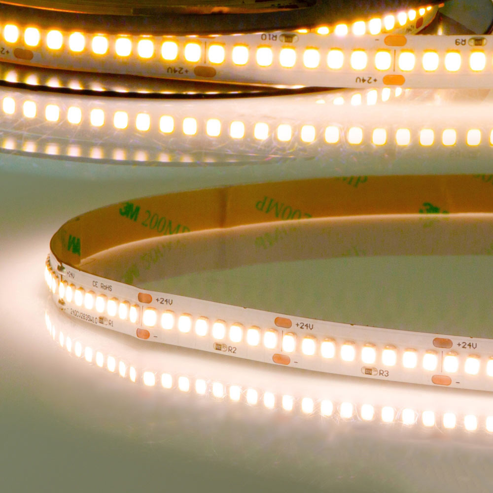 The LED Flexband HEQ HIGHT BRIGHT is an exceptionally bright indoor LED strip with dimmable, warm white light output. With excellent color rendering (CRi 93Ra), this flexband provides outstanding lighting in indoor spaces. The self-adhesive backing makes installation easy and ensures a simple attachment.