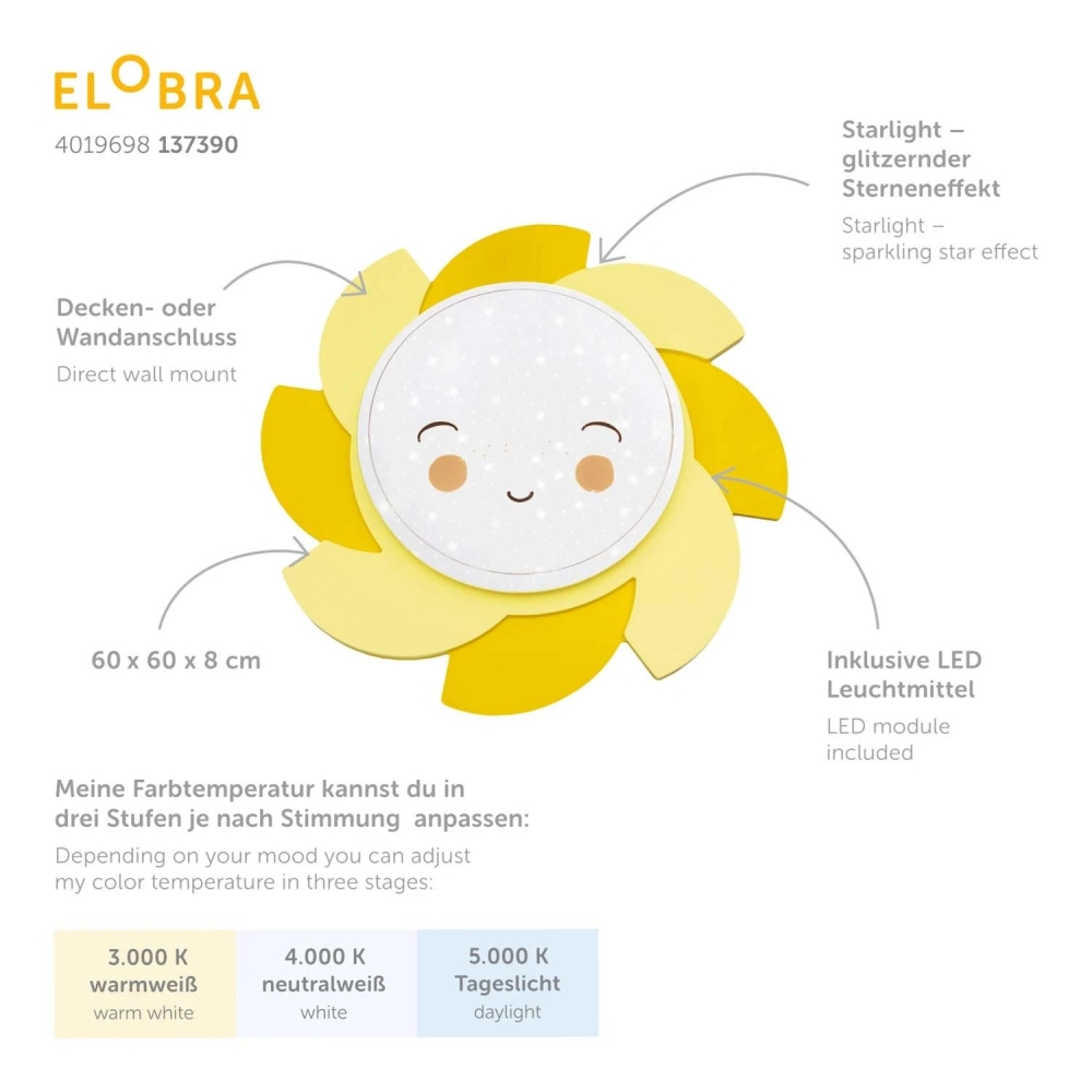 The LED sun "SIRI" STARLIGHT SMILE BLOOM DREAMS is an energy-saving and durable light with a power of 14W. With its yellow light, it creates a warm and cozy atmosphere in any room.