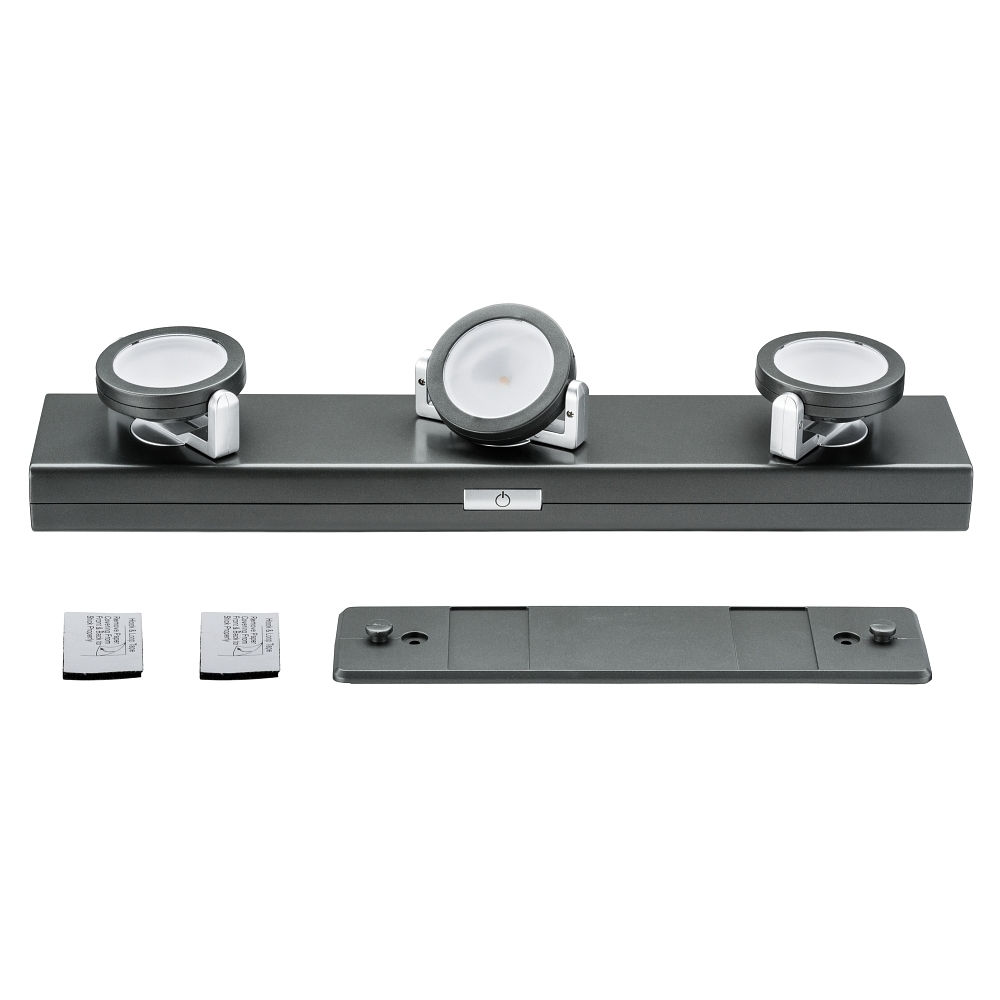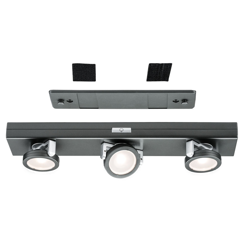 LED Under Cabinet luminaire ROTATE LED, 3 spots, 6x1,5V AAA, anthracite, dimmable, battery powered