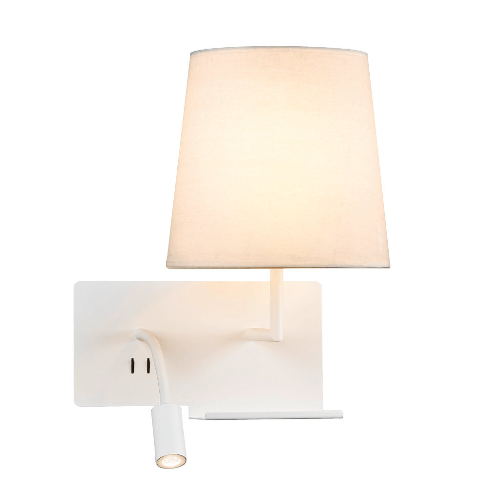 LED Wall luminaire SOMNILA FLEX Indoor, E27, mit LED Spot 65lm, 3000K, white, incl. USB port, Spot right