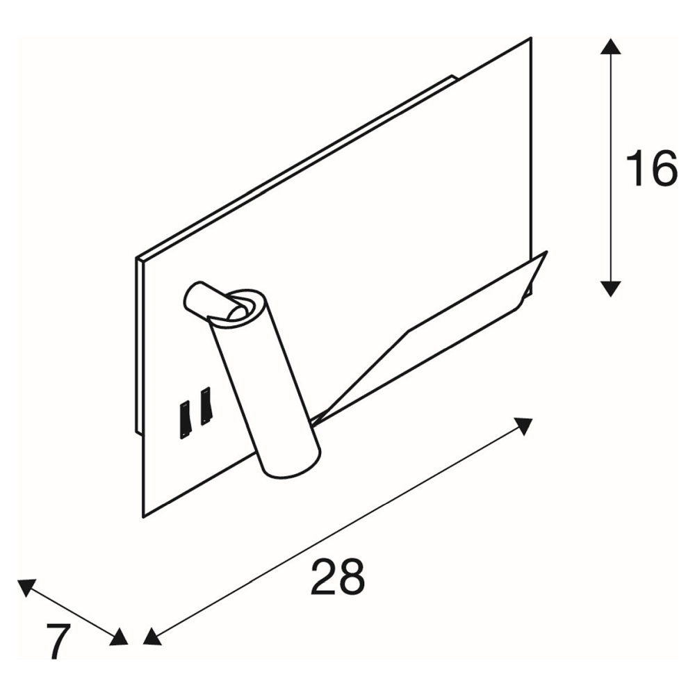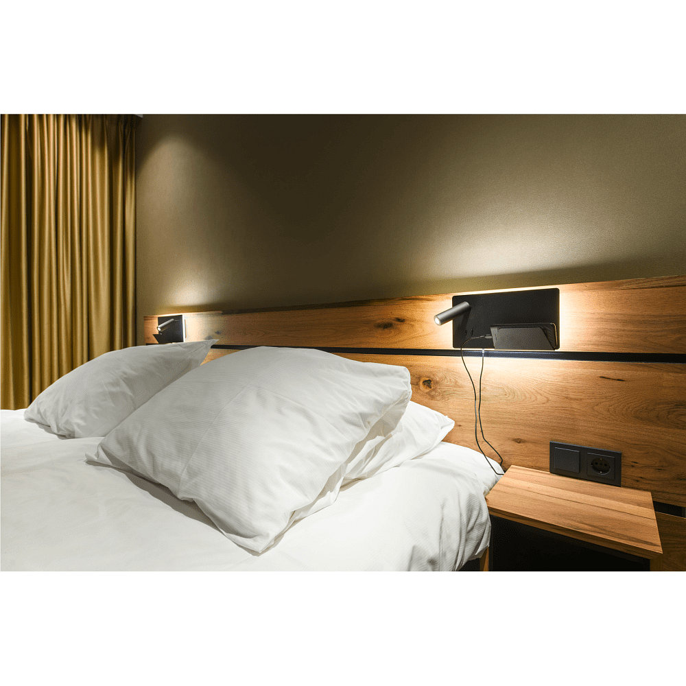LED Wall luminaire SOMNILA SPOT Indoor, 13W, 3000K, Spot 65lm, incl. USB port, Spot left, black, back light 370lm