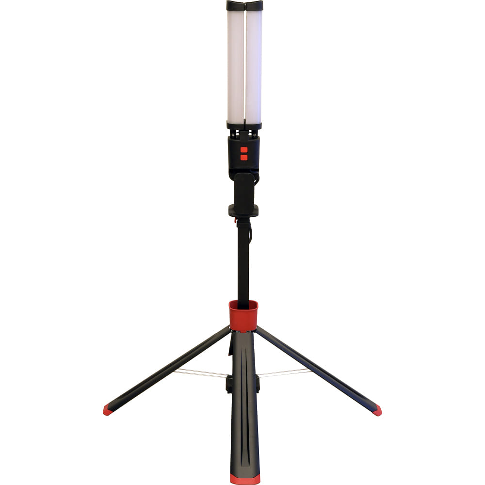 The work light has a beam angle of 150° and an average lamp life of 30000 hours. It operates at a voltage of 220-240V and weighs 5.7kg. The size is 95 x 93 x 200 cm. The material is robust plastic in red and black colors. The light color is neutral white.
