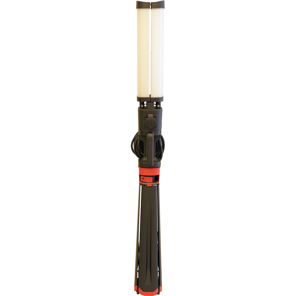 This work light features an integrated socket that allows you to connect additional devices. The 500cm long power cable offers flexibility in the placement of the light. The foldable construction light can be set up in seconds and is therefore quickly ready for use.