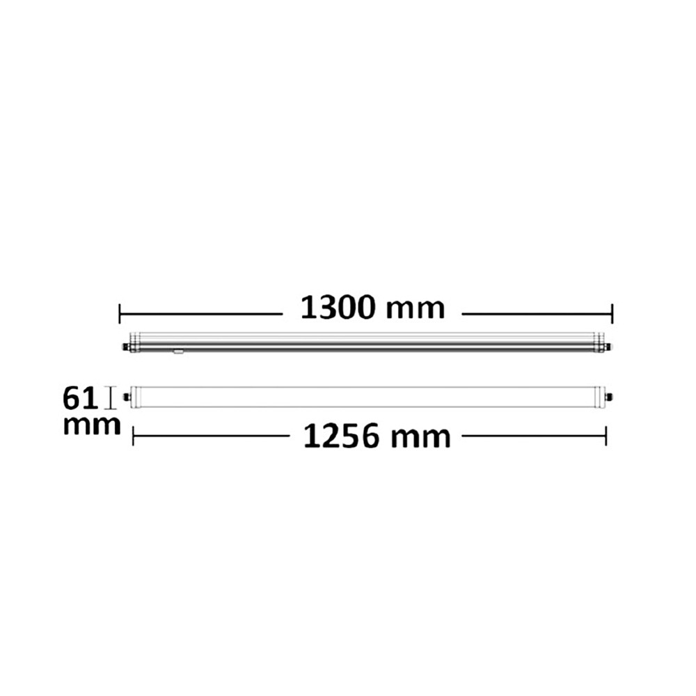 The linear luminaire is suitable for both ceiling and wall mounting. With dimensions of 129.6 x 6.1 cm and a installation depth of 5.6 cm, it fits into various spaces and environments. The luminaire is suitable for both indoor and outdoor use.