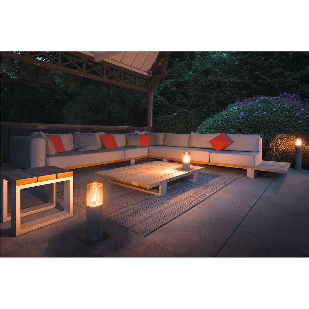 The LISENNE POLE features an E27 socket that is suitable for a variety of light bulbs. With an IP protection rating of IP54, the light is protected against dust and splashing water. The materials Basalt and glass not only give the light a modern look but also ensure durability.