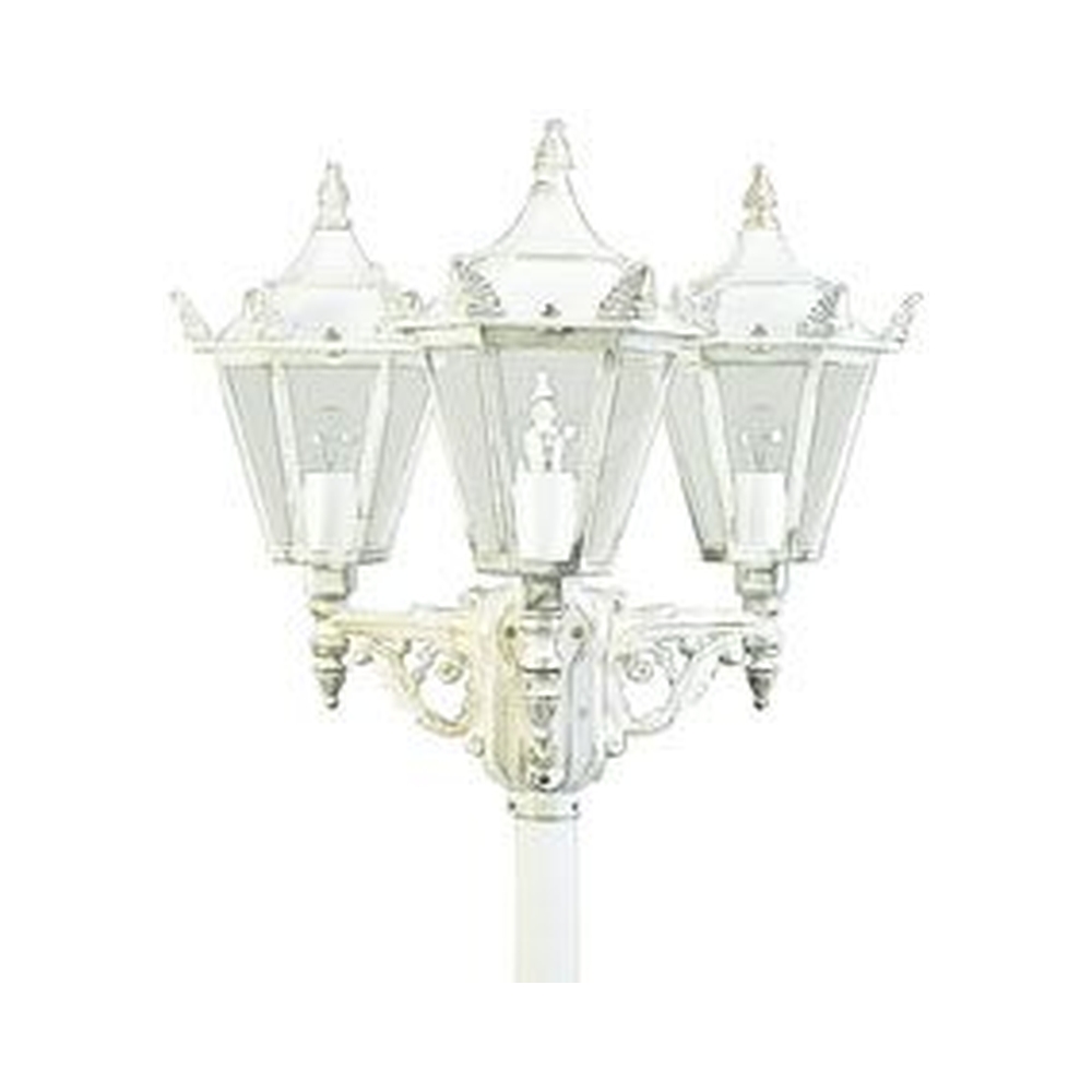 Mast light Country style 3 flames Type No. 2049, height 223cm, 3x E27 QA55 max. 57W, cast alu / glass clear, white-gold