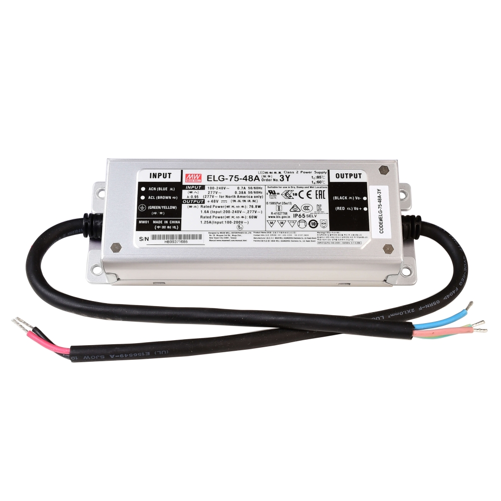 Meanwell power supply unit, CV. ELG-75-48A, voltage constant, 100-305V AC/50-60Hz, 48V DC, 0-1600 mA, 75W