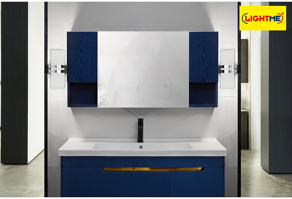 The mirror wall light AQUA ONNA by LIGHTME is a modern and elegant lighting solution for indoor use. With a power of 6W each and a light output of 500lm, this light provides bright and uniform room lighting. Thanks to the CCT-Switch, you can choose between a warm white (2700K) and neutral white (4000K) light color.