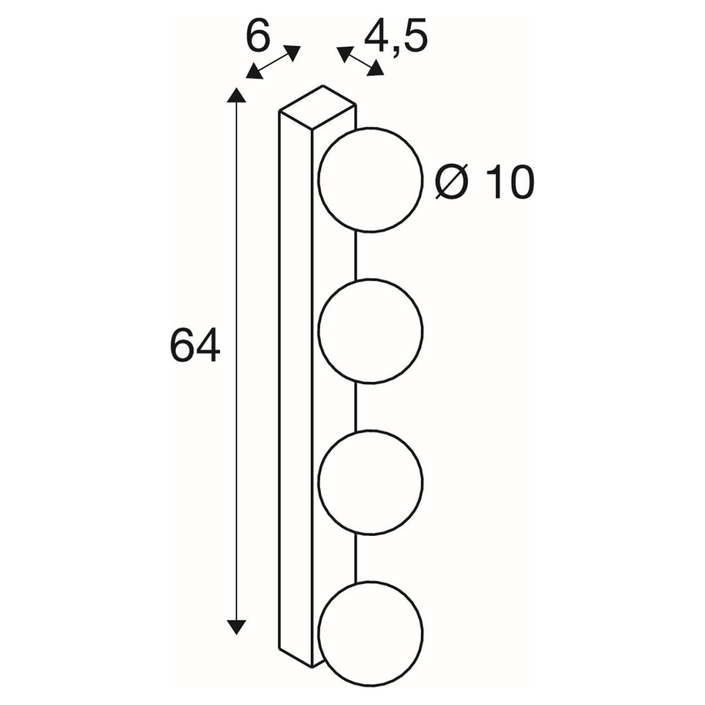 The LED mirror light SUN MIRROR has compact dimensions of 64 x 14.6 x 10 cm and an elegant black housing that harmonizes well with many interior styles. It is equipped with four light sources and allows a maximum number of up to 51 fixtures to be connected on a C16 circuit breaker, enabling flexible installation.