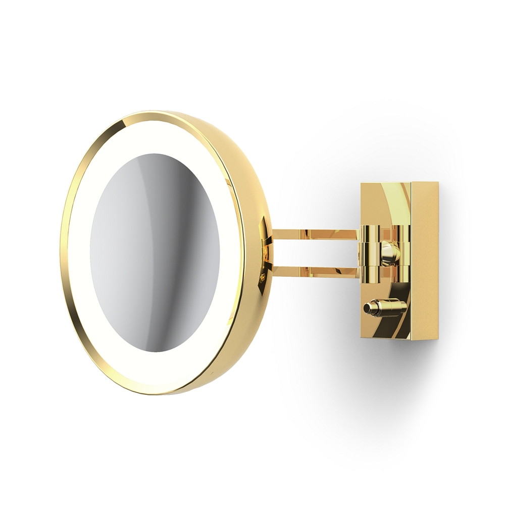 The Wall-mounted Cosmetic Mirror BS 36 7x is made of high-quality glass and steel in the color gold. The stylish design and compact size of 22.2 cm in diameter make this mirror a real eye-catcher in any room.