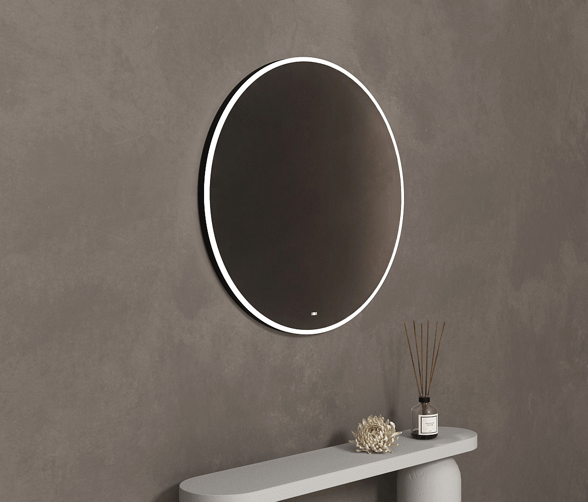 mirror with lighting FRAME CIRCLE IP20, black matt dimmable